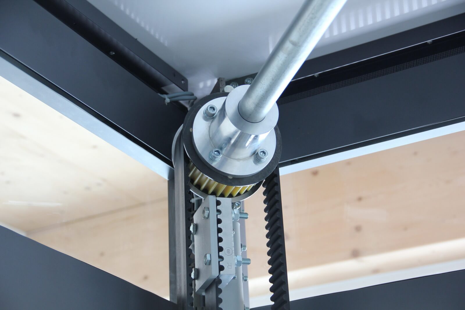 Sein solides Antriebssystem aus Elektromotor und hochwertigen Zahnriemen läuft energiesparend und wartungsarm und garantiert eine lange Lebensdauer.